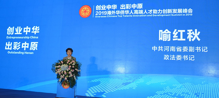 4月7日下午,“創(chuàng)業(yè)中華·出彩中原”——2019海外華僑華人高端人才助力創(chuàng)新發(fā)展峰會(huì)在河南省鄭州市舉行。中國(guó)僑聯(lián)黨組書記、主席萬立駿,中共河南省委副書記、政法委書記喻紅秋等領(lǐng)導(dǎo)出席活動(dòng)并致辭。中國(guó)留學(xué)人才發(fā)展基金會(huì)理事長(zhǎng)、歐美同學(xué)會(huì)副會(huì)長(zhǎng)曹衛(wèi)洲,河南省政協(xié)副主席、鄭州大學(xué)校長(zhǎng)劉炯天,中國(guó)僑聯(lián)副主席、福建省僑聯(lián)主席陳式海等出席活動(dòng)。中國(guó)僑聯(lián)特聘專家委員會(huì)、中國(guó)僑商會(huì)組織僑界高端人才和僑商僑領(lǐng)出席活動(dòng)�;顒�(dòng)由河南省僑聯(lián)主席董錦燕主持。
