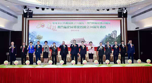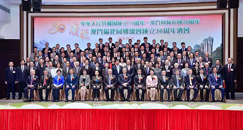 10月15日,由澳門福建同鄉(xiāng)總會主辦的“慶祝中華人民共和國成立七十周年、澳門回歸祖國二十周年、澳門福建同鄉(xiāng)總會成立三十周年”慶祝酒會在澳門旅游塔隆重舉行,澳門特區(qū)行政長官崔世安、全國政協(xié)副主席何厚鏵、中央駐澳門聯(lián)絡(luò)辦副主任張榮順、福建省政協(xié)主席崔玉英、中國僑聯(lián)副主席隋軍等共同主禮,與海內(nèi)外閩籍鄉(xiāng)親約500人共襄盛舉。
