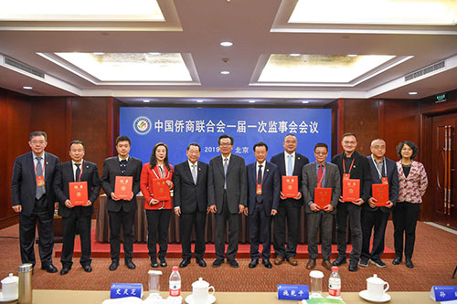 11月17日,中國(guó)僑商聯(lián)合會(huì)一屆一次監(jiān)事會(huì)在北京召開(kāi)。中國(guó)僑聯(lián)副主席、中國(guó)僑商聯(lián)合會(huì)常務(wù)副會(huì)長(zhǎng)李卓彬出席并主持會(huì)議,中國(guó)僑商聯(lián)合會(huì)會(huì)長(zhǎng)謝國(guó)民、許榮茂出席會(huì)議并講話,中國(guó)僑聯(lián)副秘書(shū)長(zhǎng)、經(jīng)濟(jì)科技部部長(zhǎng)趙紅英,中國(guó)僑聯(lián)經(jīng)濟(jì)科技部一級(jí)巡視員、中國(guó)僑商聯(lián)合會(huì)秘書(shū)長(zhǎng)安晨,中國(guó)僑商聯(lián)合會(huì)一屆一次監(jiān)事會(huì)全體成員出席會(huì)議。大會(huì)選舉施乾平為中國(guó)僑商聯(lián)合會(huì)第一屆監(jiān)事會(huì)監(jiān)事長(zhǎng)。