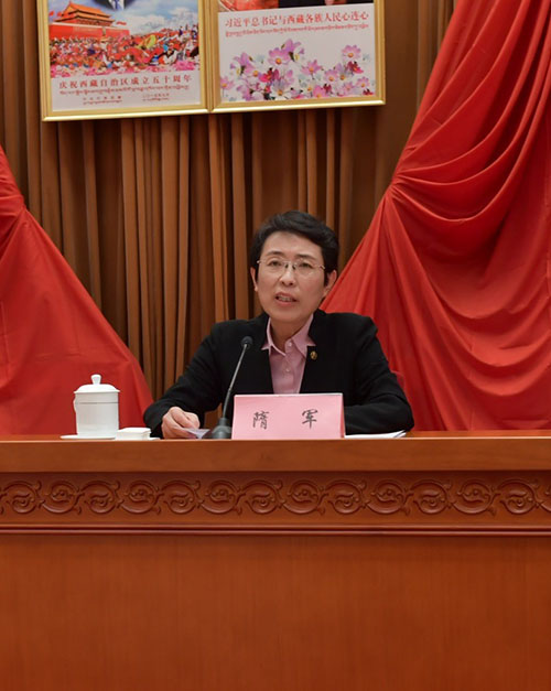 隋軍指出,黨的十八大以來,以習(xí)近平同志為核心的黨中央高度重視僑聯(lián)工作,對推進(jìn)僑聯(lián)改革、做好僑聯(lián)工作作出一系列重要部署,有力推動了僑聯(lián)事業(yè)發(fā)展。她希望西藏僑聯(lián)組織和僑聯(lián)干部以此次大會為契機(jī),以習(xí)近平新時(shí)代中國特色社會主義思想和黨的十九大精神為根本遵循,認(rèn)真學(xué)習(xí)領(lǐng)會黨的十九屆四中全會精神,全面落實(shí)“十代會”各項(xiàng)工作部署,以高度的政治責(zé)任感、時(shí)不我待的緊迫感、建功新時(shí)代的使命感,團(tuán)結(jié)引領(lǐng)西藏歸僑僑眷和境外藏胞,不斷開創(chuàng)西藏僑聯(lián)工作新局面。一要旗幟鮮明講政治,推動學(xué)習(xí)宣傳黨的十九屆四中全會精神落地見效。堅(jiān)持黨的領(lǐng)導(dǎo),增強(qiáng)“四個(gè)意識”,堅(jiān)定“四個(gè)自信”,做到“兩個(gè)維護(hù)”,引領(lǐng)廣大僑界群眾更加堅(jiān)定中國特色社會主義道路自信、理論自信、制度自信和文化自信,不斷增進(jìn)西藏歸僑僑眷和境外藏胞對“中國之治”的理解認(rèn)同,畫好僑界最大同心圓。二要治邊穩(wěn)藏反分裂,引導(dǎo)廣大僑界群眾樹牢中華民族共同體意識。發(fā)揮僑聯(lián)在凝聚僑心中的工作優(yōu)勢和作用,做好境外藏胞團(tuán)結(jié)爭取工作,引導(dǎo)廣大僑胞特別是回國定居藏胞、藏胞友我力量,堅(jiān)守民族大義、把握時(shí)代大勢、毫不動搖地維護(hù)、支持祖國統(tǒng)一和民族團(tuán)結(jié),堅(jiān)決與達(dá)賴集團(tuán)等一切分裂勢力作斗爭,講好中國故事、講好中國制度的故事、講好中國西藏故事,有力抵制國際社會涉藏雜音,為西藏經(jīng)濟(jì)社會發(fā)展?fàn)I造良好環(huán)境。三要匯聚僑力促發(fā)展,為建設(shè)美麗和諧幸福新西藏貢獻(xiàn)力量。緊緊圍繞國家發(fā)展戰(zhàn)略和西藏經(jīng)濟(jì)社會發(fā)展中心任務(wù)謀劃推動僑聯(lián)工作,加強(qiáng)境外藏胞聯(lián)誼聯(lián)絡(luò),大力宣傳大美西藏,為西藏經(jīng)濟(jì)社會高質(zhì)量發(fā)展增添嶄新動能;主動排憂解難,維護(hù)合法權(quán)益,在教育、醫(yī)療、就業(yè)、扶貧等工作中多做好事實(shí)事,加大對困難歸僑僑眷、藏胞的幫扶關(guān)愛力度,為西藏民生改善、社會穩(wěn)定作出貢獻(xiàn)。四要加強(qiáng)自身建設(shè),不斷增強(qiáng)僑聯(lián)組織的凝聚力和戰(zhàn)斗力。進(jìn)一步夯實(shí)組織基礎(chǔ),擴(kuò)大基層僑聯(lián)組織覆蓋面,向回國定居的僑胞藏胞集中的大學(xué)、園區(qū)、社區(qū)等領(lǐng)域延伸,逐步建立“兩張網(wǎng)”;加強(qiáng)僑聯(lián)僑務(wù)干部隊(duì)伍建設(shè),努力成為“貼心人”和“ 實(shí)干家”。