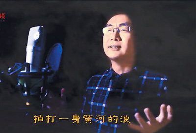 亞太通訊社社長劉繼明在錄制歌曲《華夏赤子》。(劉繼明供圖)