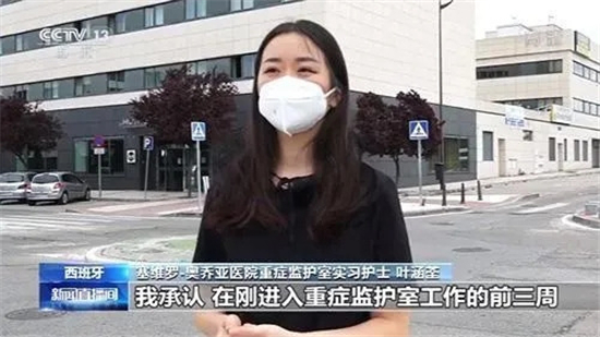 祖籍浙江溫州的95后護士葉涵荃,是一名在讀醫(yī)學專業(yè)碩士。西班牙出現(xiàn)新冠肺炎疫情后,她就毅然申請加入了抗疫隊伍,成為了塞維羅-奧喬亞醫(yī)院重癥監(jiān)護室臨時聘用的實習護士。