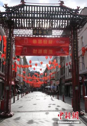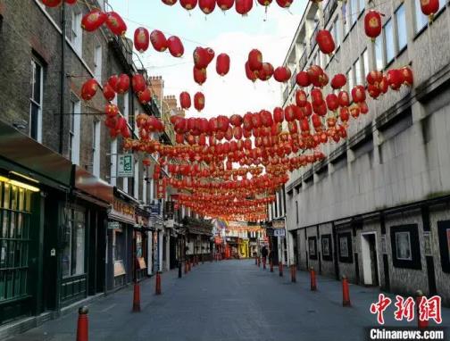 在倫敦中國城,一排排大紅燈籠連成一片喜慶的“天空”,人群卻略顯稀疏,之前一條長隊排到街頭巷尾的奶茶店幾乎沒有顧客。