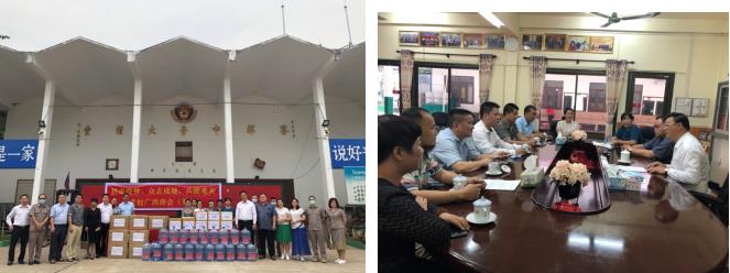 “新冠”無(wú)情,人間有愛(ài),新冠肺炎疫情時(shí)刻牽動(dòng)著每一個(gè)人的心。2020年5月4日至5月8日,受老撾中國(guó)總商會(huì)廣西商會(huì)籌委會(huì)(以下簡(jiǎn)稱廣西商會(huì)(籌))組長(zhǎng)陳欽儒先生委托,由副組長(zhǎng)何詩(shī)先生、陳新軍先生、陳釗林先生,籌委會(huì)主要成員廖培遠(yuǎn)女士、覃吉平先生、韋敏貴先生六人組成的慰問(wèn)團(tuán),代表廣西商會(huì)(籌)將一批批抗疫物資捐贈(zèng)給老撾南部四所華校董事會(huì)和全校師生,看望慰問(wèn)留守老撾的中國(guó)外派教師。感謝張富華先生全程參與與指導(dǎo)此次活動(dòng)。