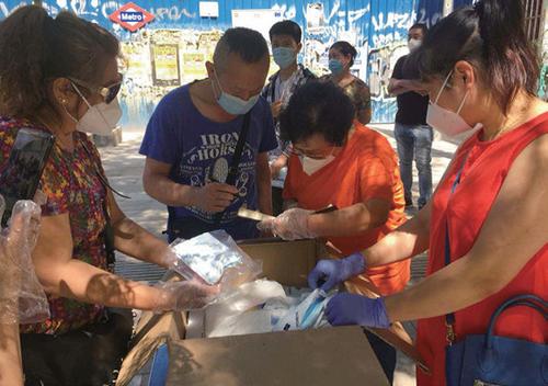 馬德里山東聯(lián)誼會成員分發(fā)口罩。(來源:馬德里山東聯(lián)誼會)