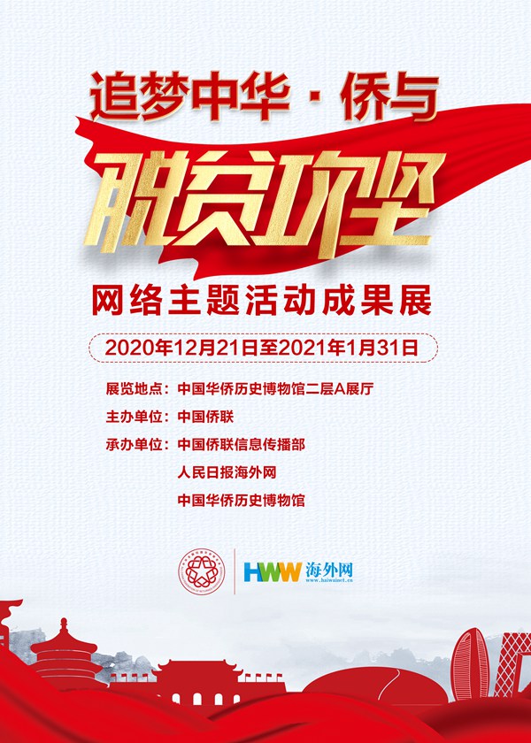 “追夢中華·僑與脫貧攻堅”網(wǎng)絡主題活動由中國僑聯(lián)主辦,中國僑聯(lián)信息傳播部、人民日報海外網(wǎng)承辦,旨在突出展現(xiàn)僑界在助力中國脫貧攻堅、全面建成小康社會中發(fā)揮的獨特作用,并通過僑界向世界講好脫貧攻堅的中國故事�;顒訌�2020年6月持續(xù)到2021年1月,分為“追夢中華·僑與脫貧攻堅”微紀錄片、“喜看僑鄉(xiāng)新變化”網(wǎng)友互動征集、“僑界脫貧攻堅圖片故事”征集與展示、“追夢中華·僑與脫貧攻堅”網(wǎng)絡主題活動成果展四大板塊,受到社會各界特別是僑界的廣泛關注。截至11月底,活動共收到投稿近萬篇,全網(wǎng)點擊量超6700萬次,覆蓋全球40余個國家和地區(qū),匯聚成一幅由千萬網(wǎng)友共同描繪的“脫貧攻堅”勝利畫卷。網(wǎng)絡主題活動期間,中國僑聯(lián)和人民日報海外網(wǎng)組派聯(lián)合攝制組,分別赴貴州遵義市紅渡村、江西上饒市上樂村、湖南湘西自治州十八洞村拍攝了3部反映僑界助力脫貧攻堅的微紀錄片,微紀錄片播出以來,得到了海內(nèi)外僑界的廣泛好評,點擊量超千萬次。