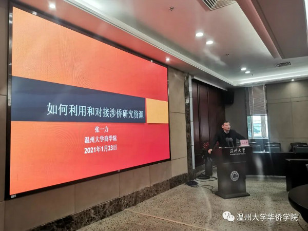 1月23日上午,中國華僑華人研究(溫州大學(xué))基地學(xué)術(shù)工作坊第二期在溫州大學(xué)巖松堂白鹿廳舉行,溫州市僑聯(lián)副主席楊海曼、溫州肯恩大學(xué)副校長嚴(yán)曉鵬、麗水學(xué)院方明教授、溫州大學(xué)張一力教授、青田縣僑聯(lián)華僑史料征集辦公室主任、華僑學(xué)院兼職顧問周峰等30余名涉僑研究專家學(xué)者齊聚一堂,共話華僑華人發(fā)展,共享學(xué)術(shù)盛宴。學(xué)術(shù)工作坊由溫州大學(xué)華僑學(xué)院常務(wù)副院長包含麗主持。