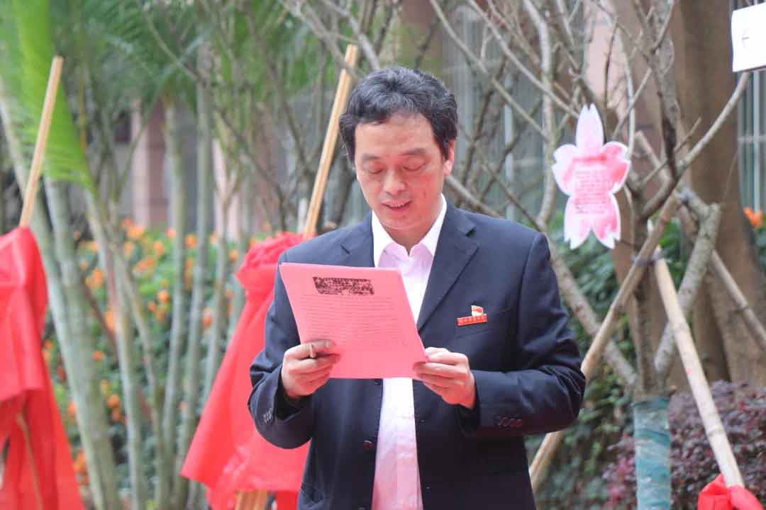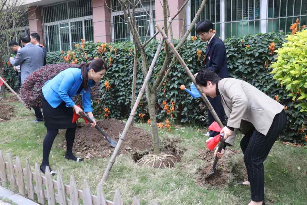 在揭幕儀式上,劉燕校長(zhǎng)對(duì)福建省僑聯(lián)領(lǐng)導(dǎo)和各位僑領(lǐng)、校董蒞臨我校參加“僑心林”植樹(shù)節(jié)系列活動(dòng)表示熱烈歡迎。同時(shí)她代表學(xué)校全體師生向長(zhǎng)期以來(lái)對(duì)學(xué)校發(fā)展給予關(guān)心支持的各界人士表示衷心感謝。她表示,此次活動(dòng)福建省僑聯(lián)以及校董王彬女士、劉丹蕻女士共同為學(xué)校捐贈(zèng)了十棵櫻花樹(shù)和十棵茶花樹(shù),種植在學(xué)校綠化園,象征著華僑精神在華僑中學(xué)生根、開(kāi)花。百年大計(jì),教育為本。教育育人,鑄魂為本。本次活動(dòng)以3月12日傳統(tǒng)植樹(shù)節(jié)為契機(jī),以“僑心林”,“僑校文化下的勞動(dòng)基地”為平臺(tái),引導(dǎo)學(xué)生認(rèn)識(shí)華僑,不斷厚植華僑精神,潤(rùn)物無(wú)聲地給學(xué)生以人生啟迪、智慧光芒、精神力量,不斷增強(qiáng)愛(ài)國(guó)主義教育的吸引力、感染力和影響力,切身體驗(yàn)感知華僑華人愛(ài)國(guó)情感,激發(fā)愛(ài)國(guó)之情與投身報(bào)國(guó)之行同頻共振。福州華僑中學(xué)與華僑有著解不開(kāi)的緣分,有著根深蒂固的鏈接。相信學(xué)校在習(xí)近平總書(shū)記的題詞“弘揚(yáng)愛(ài)國(guó)傳統(tǒng),傳播中華文化”指引下,堅(jiān)持“僑魂德澤,止於至善”的辦學(xué)特色,定能把華僑精神在一代又一代僑中人中傳承下去,激勵(lì)僑中學(xué)子篤學(xué)上進(jìn),勵(lì)志報(bào)國(guó)。