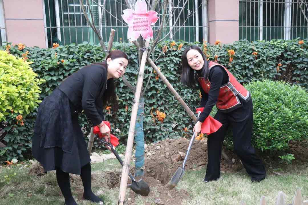 揭幕儀式后,全體領(lǐng)導(dǎo)、來(lái)賓、師生們來(lái)到僑心林親手種下一株株櫻花樹(shù)。那一株株象征著希望的櫻花樹(shù),就像僑中朝氣蓬勃的學(xué)生一樣迎著陽(yáng)光更加燦爛,就像僑中蒸蒸日上的事業(yè)迎著黨的陽(yáng)光更加輝煌,就像愛(ài)國(guó)愛(ài)鄉(xiāng)的華僑背靠祖國(guó)彰顯著“進(jìn)取、勤勞、開(kāi)放、包容、奉獻(xiàn)”的華僑精神。