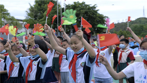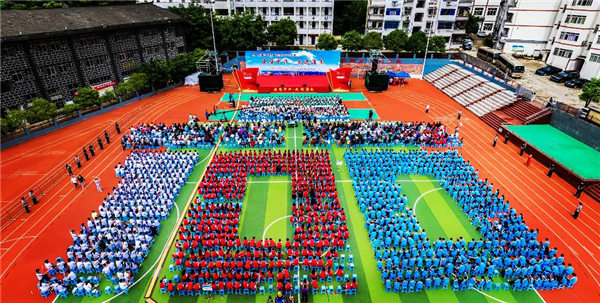 6月3日,位于重慶市潼南區(qū)的雙江中學(xué),此時(shí)如同一幅畫(huà):白色、紅色、藍(lán)色,身著各色服裝的2300名潼南歸僑僑眷、當(dāng)?shù)厝罕姾蛯W(xué)生代表,正整齊劃一地端坐在操場(chǎng)上,熱情洋溢的笑臉,恰似那抹亮眼的晨光。