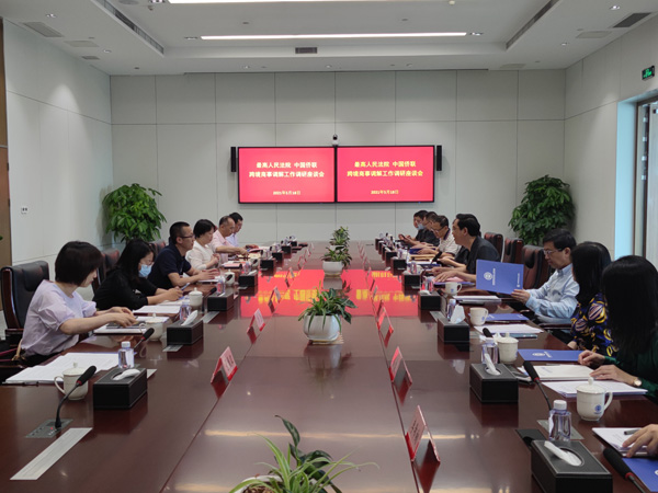18日上午,調(diào)研組來(lái)到深圳市前海合作區(qū)人民法院,了解前海法院國(guó)際商事調(diào)解工作情況并聽(tīng)取深圳市中院關(guān)于開(kāi)展涉僑矛盾糾紛多元化解的工作介紹。在深圳期間,調(diào)研組還參觀(guān)考察了云天勵(lì)飛公司、深圳藍(lán)海法律查明和商事調(diào)解中心等單位,了解企業(yè)業(yè)務(wù)開(kāi)展現(xiàn)狀和發(fā)展前景。