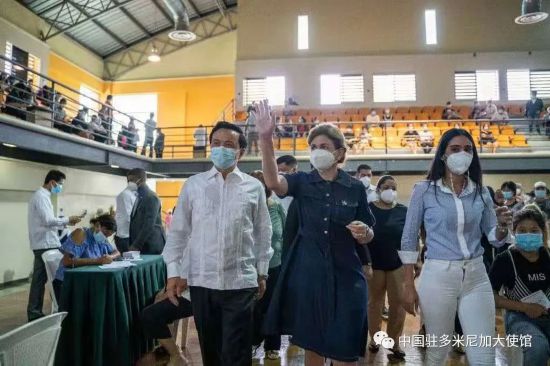 5月29日,在中國駐多米尼加大使館積極協(xié)調(diào)下,多政府在首都圣多明各奧林匹克中心擊劍館為旅多華僑華人舉辦“春苗行動”第二場新冠疫苗接種專場,為僑胞進(jìn)行二劑次集中接種。多副總統(tǒng)培尼亞親赴現(xiàn)場,視察接種工作,慰問接種僑胞。中國駐多米尼加大使張潤陪同。