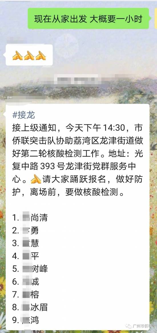 所有排隊(duì)參檢的龍津街坊已全部檢測完畢,此時(shí),廣州市僑聯(lián)12名黨員突擊隊(duì)員已整整服務(wù)14個(gè)小時(shí),共服務(wù)檢測人員約3000人次。下一步,市僑聯(lián)黨員突擊隊(duì)將時(shí)刻準(zhǔn)備、有呼必應(yīng),堅(jiān)決完成黨組織賦予的各項(xiàng)任務(wù)!
