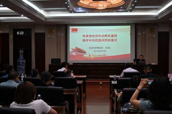 宣講會上,馬漢功處長做了題為《傳承黨的百年光輝史基因、鑄牢中華民族共同體意識》的專題宣講,從“深刻理解和把握鑄牢中華民族共同體意識的豐富內(nèi)涵、從黨的百年征程中感悟鑄牢中華民族共同體意識的偉大實踐、傳承黨的百年光輝史基因增強鑄牢中華民族共同體意識的政治自覺”三個方面,系統(tǒng)闡述了鑄牢中華民族共同體意識的科學內(nèi)涵和重大意義,生動講述了寧夏在中國共產(chǎn)黨的領(lǐng)導下取得的巨大成就和翻天覆地的變化,內(nèi)容主題鮮明、深入淺出、事例鮮活、說理透徹,對進一步深刻把握習近平總書記關(guān)于民族工作的重要論述、深入開展“傳承黨的百年光輝史基因、鑄牢中華民族共同體意識”主題教育活動具有指導意義。