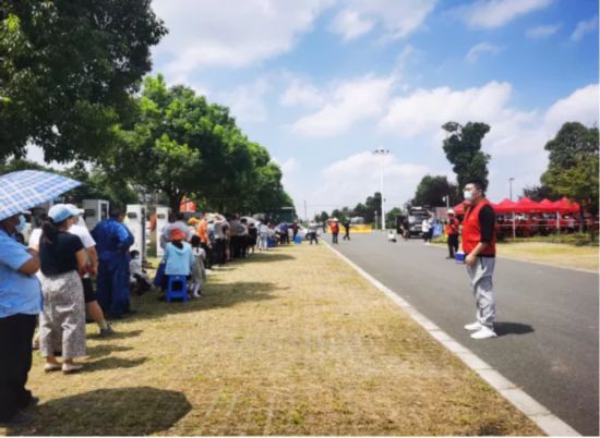 根據(jù)街道和社區(qū)安排部署,志愿者們于7月25日上午7時(shí)20分趕赴江浦實(shí)小核酸檢測(cè)采樣點(diǎn),投入到服務(wù)工作中。浦口區(qū)教育系統(tǒng)僑聯(lián)主席呂仕蕓以身作則,和志愿者們一同協(xié)助完成隊(duì)伍秩序維持、檢測(cè)掃碼、錄入登記等工作,志愿服務(wù)安全有序地開展著。