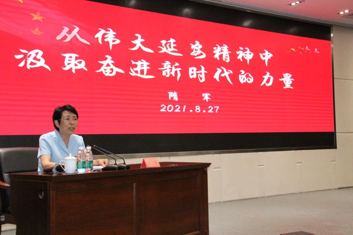隋軍指出,要從延安時(shí)期的斗爭(zhēng)實(shí)踐中深入理解延安精神的豐富內(nèi)涵。隋軍通過(guò)梳理回顧黨中央在延安時(shí)期發(fā)生的重大事件和召開(kāi)的重要會(huì)議,概括總結(jié)出形成以毛澤東為核心的第一代黨的領(lǐng)導(dǎo)集體、形成毛澤東思想、成功實(shí)施黨的建設(shè)“偉大工程”、領(lǐng)導(dǎo)取得抗日戰(zhàn)爭(zhēng)的偉大勝利、培養(yǎng)造就一大批革命的領(lǐng)導(dǎo)人才、積累“局部執(zhí)政”經(jīng)驗(yàn)、培育偉大的延安精神等黨在延安時(shí)期取得的主要成就,詳細(xì)解讀了以堅(jiān)定正確的政治方向,解放思想、實(shí)事求是,全心全意為人民服務(wù),自力更生、艱苦奮斗為主要內(nèi)容的延安精神。她指出,延安精神是指引中華民族從苦難走向輝煌的“精神寶塔”,鐫刻著老一輩無(wú)產(chǎn)階級(jí)革命家堅(jiān)定的政治立場(chǎng)和崇高的人格風(fēng)范,滋養(yǎng)了一代又一代共產(chǎn)黨人的初心。