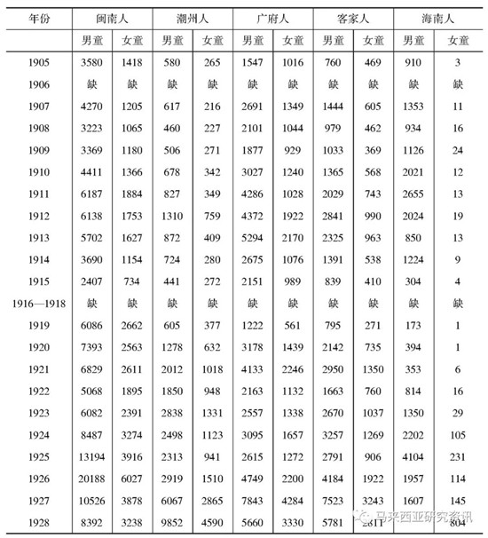 表2 從新加坡港口上岸的中國(guó)兒童移民:人數(shù)、性別與方言群