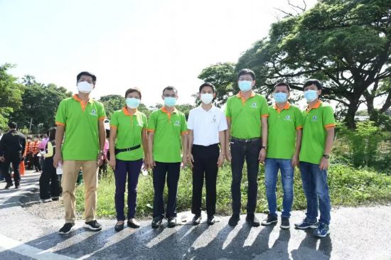 國(guó)會(huì)主席川立派閣下、伊沙拉國(guó)會(huì)議員、信武里府尹CHAI CHAN,泉州晉江聯(lián)合總會(huì)救援小組成員蔡上新會(huì)長(zhǎng)、陳俞龍執(zhí)行會(huì)長(zhǎng)等與災(zāi)區(qū)群眾在一起
