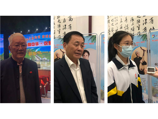 文昌中學(xué)優(yōu)秀學(xué)生代表黃子蕓說:“我們學(xué)校很多建筑都是僑胞捐款建造的,這讓我感受到了僑界人士愛國愛鄉(xiāng)的赤子之心。今晚,我非常開心,欣賞到這么多藝術(shù)家的精彩演出,尤其是方錦龍老師的節(jié)目,讓我對民族音樂有了新的認識,讓我感受到這一優(yōu)秀傳統(tǒng)文化的深厚底蘊和獨特魅力。作為新時代的青年,我要牢記習(xí)近平總書記的殷切囑托,不負韶華,只爭朝夕,用奮斗書寫自己的青春,回饋家鄉(xiāng),報效祖國�!�