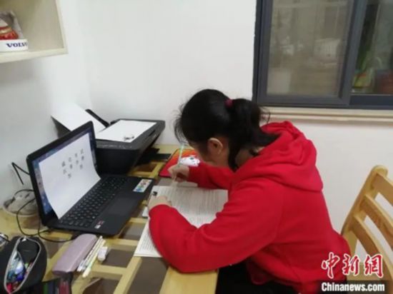 資料圖:留學(xué)生在家中上網(wǎng)課。