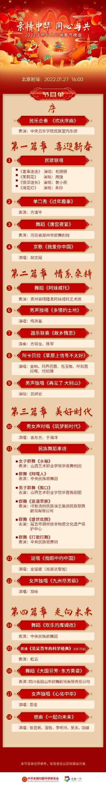 整場晚會分為“喜迎新春”“情系桑梓”“美好時代”“走向未來”四個篇章,通過年味兒滿滿、國韻十足的節(jié)目內(nèi)容,展現(xiàn)出中華文化獨特魅力。