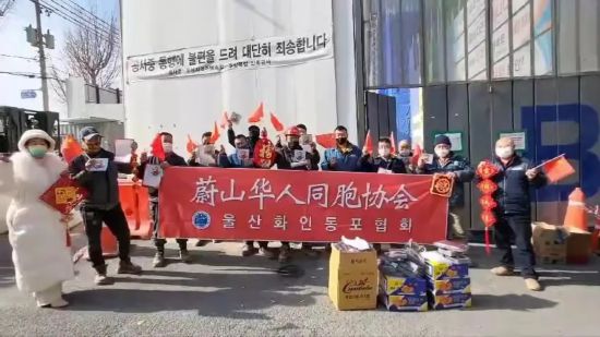 在蔚山務(wù)工的中國(guó)同胞也收到了備有口罩、耳罩、圍脖、手套、面粉、糯米、油、方便面、桔子等物資的“春節(jié)包”。