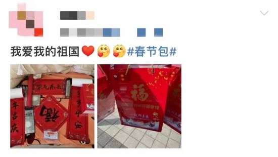 “春節(jié)包”年味兒十足,不僅有口罩等防疫物品,還有來(lái)自家鄉(xiāng)的小零食、溫情暖暖的慰問(wèn)信以及應(yīng)景的北京冬奧會(huì)明信片等。