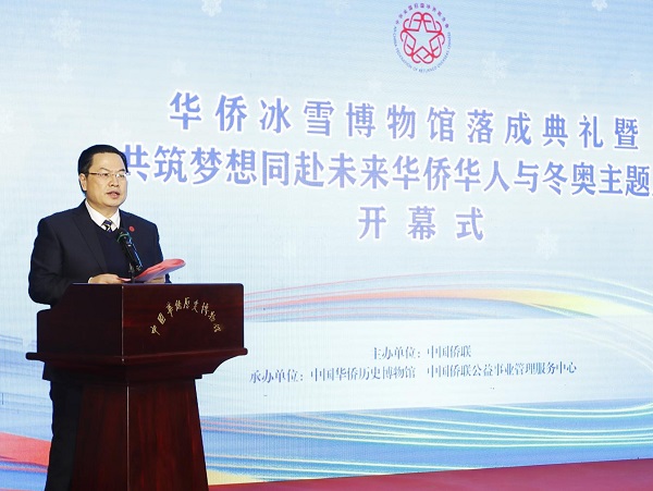 他強調(diào),2019年,中國僑聯(lián)向全球華僑華人發(fā)出“捐建華僑冰雪博物館”及征集相關(guān)展藏品活動倡議書。廣大海外僑胞、歸僑僑眷、僑商僑企和各級僑聯(lián)組織積極響應(yīng)、踴躍參與,充分展現(xiàn)了廣大僑胞心系桑梓、愛國愛鄉(xiāng)的深厚情懷,充分展現(xiàn)了僑界助力國家大事的作為和風(fēng)采。此次活動的舉辦,是團結(jié)引領(lǐng)廣大僑胞更好建功新時代、奮進新征程的具體行動,是以冬奧為紐帶,促進中國與世界友好、推動構(gòu)建人類命運共同體的具體行動。