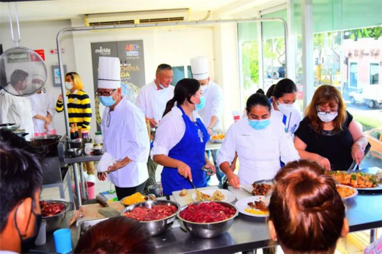 主廚徐先生和其他幾位名廚課后還接受了當(dāng)?shù)孛襟w的采訪,在采訪中他們表示,這是梅里達(dá)第二次舉辦美食節(jié)活動(dòng),但是他們作為受邀來(lái)賓,是第一次來(lái)梅里達(dá)參加此類(lèi)活動(dòng),能有機(jī)會(huì)向墨西哥民眾展示中國(guó)美食文化,他們感到很榮幸。