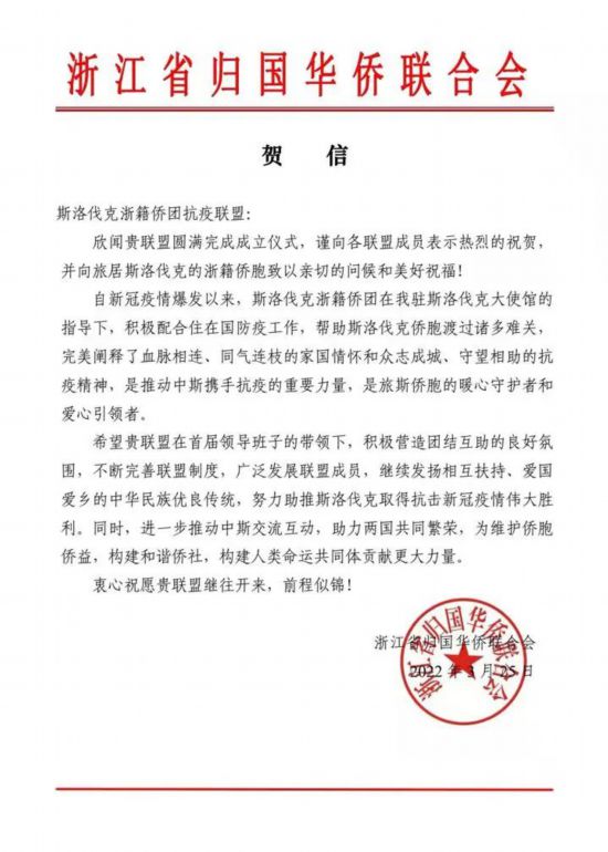 關(guān)于成立斯洛伐克浙籍僑團(tuán)抗疫聯(lián)盟加強(qiáng)抗疫協(xié)作的聯(lián)合聲明