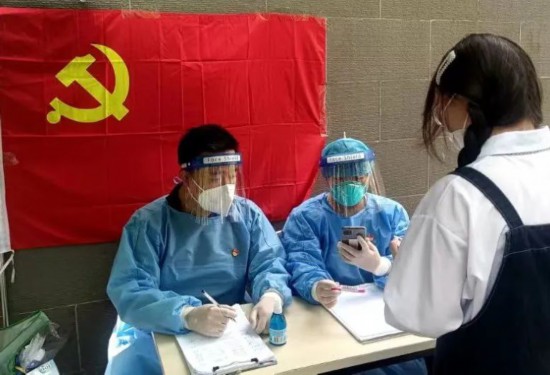 烈日炎炎,現(xiàn)場志愿者汗水澆透了衣服、浸濕了臉龐,北京市豐臺區(qū)僑聯(lián)黨支部黨員干部堅決落實市、區(qū)要求,充分發(fā)揮黨組織的戰(zhàn)斗堡壘作用,始終接續(xù)奮戰(zhàn)在抗疫一線,讓鮮紅的黨旗高高飄揚在核酸檢測采樣點。