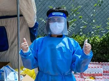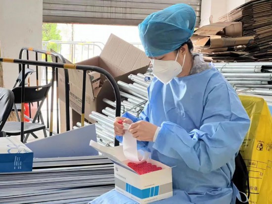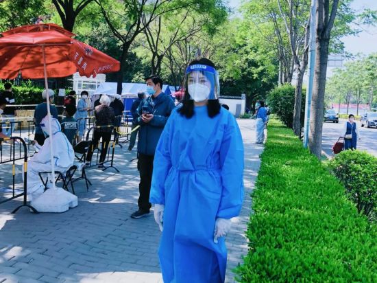 區(qū)僑聯(lián)委員趙婉彤參與多輪核酸檢測志愿服務(wù)。