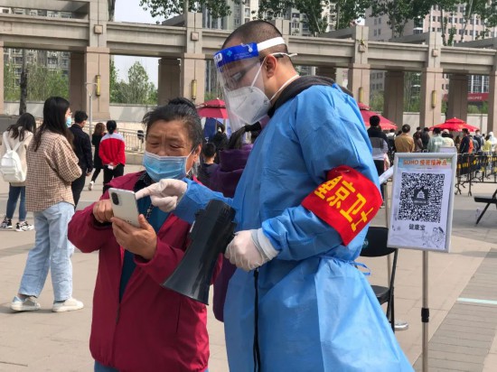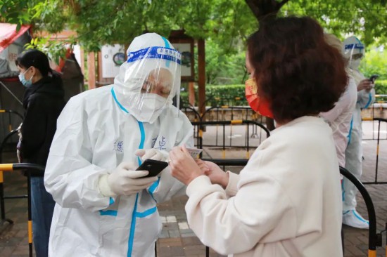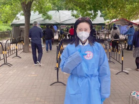 區(qū)僑聯(lián)常委賈巖積極參與社區(qū)抗疫志愿服務(wù),包括核酸檢測維持現(xiàn)場秩序、掃碼登記、測溫等工作。
