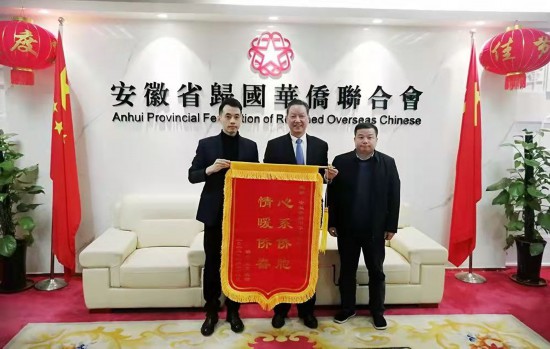 僑胞送來“心系僑胞、情暖僑眷”錦旗表達(dá)感謝之情