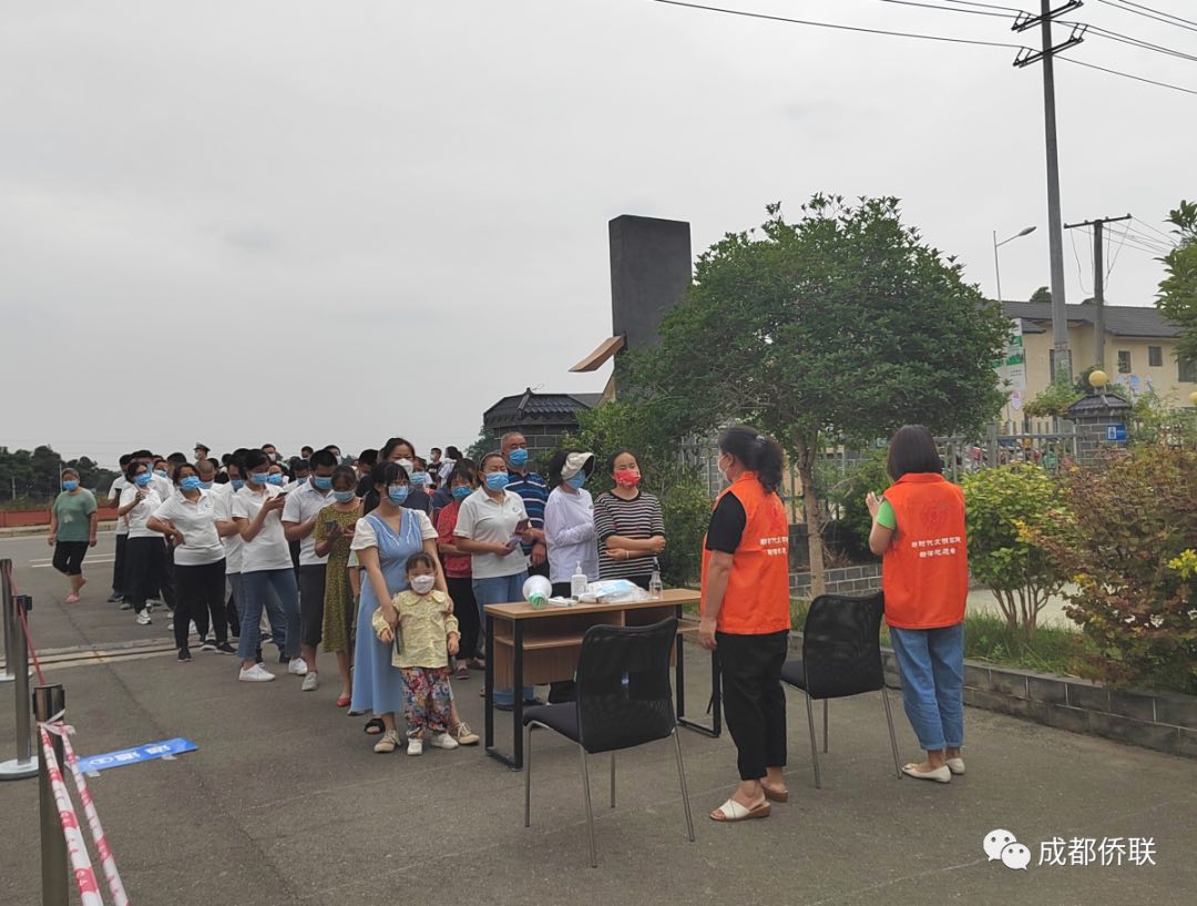 新津區(qū)僑聯(lián)主席梁志川第一時(shí)間深入馬王村、玉龍村調(diào)研指導(dǎo)。玉龍村黨委書記楊兵,花橋街道馬王村黨委書記茍萍和普興街道統(tǒng)戰(zhàn)干部李文瓊積極組織“僑胞之家”黨員干部持續(xù)“戰(zhàn)斗”在核酸檢測(cè)一線�!按蠹易⒁獯骱每谡帧薄芭抨�(duì)間隔一米”“請(qǐng)?zhí)崆按蜷_健康碼,以便工作人員核驗(yàn)”,在每個(gè)社區(qū),僑聯(lián)黨員干部在認(rèn)真做好自身防護(hù)的情況下,各負(fù)其責(zé),維持現(xiàn)場(chǎng)秩序,配合社區(qū)工作人員為核酸檢測(cè)工作布置采樣場(chǎng)地,采樣中耐心引導(dǎo)群眾保持安全距離、做好信息登記、進(jìn)行核酸采樣、疏導(dǎo)群眾、規(guī)范有序離場(chǎng)。