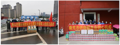 南充市僑聯(lián)、南充市僑商會在得知南充市順慶區(qū)綜合行政執(zhí)法局急需口罩、水等物資后,立即發(fā)起捐贈倡議,華中建設(shè)集團、尚品時代商業(yè)管理公司、澤蒼醫(yī)藥有限公司等會員企業(yè)積極響應(yīng),募集善款采購口罩7000只、礦泉水100箱、方便面50箱。