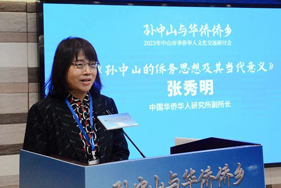 會(huì)上中國(guó)華僑華人研究所副所長(zhǎng)、中國(guó)華僑歷史學(xué)會(huì)副會(huì)長(zhǎng)兼秘書(shū)長(zhǎng)張秀明作了題為《孫中山的僑務(wù)思想及其當(dāng)代意義》的報(bào)告。她表示,“孫中山先生是偉大的民族英雄、偉大的愛(ài)國(guó)主義者、中國(guó)民主革命的偉大先驅(qū)�!� 他與華僑有著緊密聯(lián)系與深厚淵源。孫中山開(kāi)展革命是從海外華僑中開(kāi)始的,廣大愛(ài)國(guó)華僑是孫中山革命活動(dòng)強(qiáng)有力的支持者與積極參與者。孫中山高度評(píng)價(jià)華僑在辛亥革命中的作用和貢獻(xiàn),贊揚(yáng)“華僑乃革命之母”、“華僑有功革命”。他重視華僑、愛(ài)護(hù)華僑、把華僑當(dāng)作中國(guó)革命和建設(shè)的重要依靠力量。100多年前,中山先生發(fā)出了“振興中華”的吶喊。今天,中國(guó)前所未有地接近實(shí)現(xiàn)中華民族偉大復(fù)興的目標(biāo)。在中國(guó)革命、建設(shè)和改革各個(gè)歷史時(shí)期,海外僑胞做出了重要貢獻(xiàn)。在實(shí)現(xiàn)中華民族偉大復(fù)興中國(guó)夢(mèng)的新征程中,海外僑胞是重要的推動(dòng)力量。中山先生和華僑的革命精神是連接海內(nèi)外中華兒女的共同精神紐帶和共有的歷史記憶,對(duì)進(jìn)一步構(gòu)筑新時(shí)期海內(nèi)外中華兒女共有的精神家園,增強(qiáng)海外僑胞的情感認(rèn)同和文化認(rèn)同,具有重要意義。