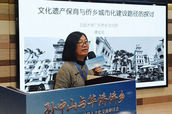 五邑大學(xué)廣東僑鄉(xiāng)文化研究院暨建筑系教授譚金花,作了題為《文化遺產(chǎn)保育與僑鄉(xiāng)城市化建設(shè)路徑的探討》的報(bào)告。她認(rèn)為,應(yīng)該厘清文化遺產(chǎn)保育與僑鄉(xiāng)城市化建設(shè)的關(guān)系,厘清文化遺產(chǎn)與社區(qū)可持續(xù)發(fā)展的關(guān)系。保護(hù)這些文化遺產(chǎn)并不意味著拒絕發(fā)展,更非凝固歷史、阻止改變,而是在時(shí)代變遷的過(guò)程中積極應(yīng)對(duì)改變的步伐。在這個(gè)過(guò)程中應(yīng)注重完整性、真實(shí)性,注重物質(zhì)和非物質(zhì)文化遺產(chǎn)的保育,以社區(qū)可持續(xù)發(fā)展為最終目標(biāo)。