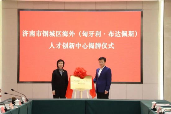 米文芃、程學鋒共同為“鋼城區(qū)海外(匈牙利·布達佩斯)人才創(chuàng)新中心”揭牌。