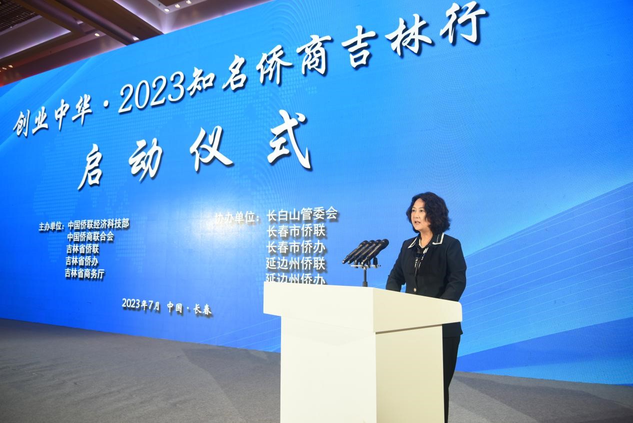 7月26日,創(chuàng)業(yè)中華·2023知名僑商吉林行活動(dòng)在吉林省長(zhǎng)春市啟動(dòng)。中國(guó)僑聯(lián)副秘書(shū)長(zhǎng)、經(jīng)濟(jì)科技部部長(zhǎng)趙紅英,吉林省僑聯(lián)黨組書(shū)記、統(tǒng)戰(zhàn)部副部長(zhǎng)鮑九生出席啟動(dòng)儀式并致辭,吉林省僑聯(lián)主席丁兆麗主持。吉林省委統(tǒng)戰(zhàn)部副部長(zhǎng)、省僑辦主任馮慶忠,省商務(wù)廳一級(jí)巡視員王明奎和省市相關(guān)部門(mén)及僑商代表230余人參加活動(dòng)。