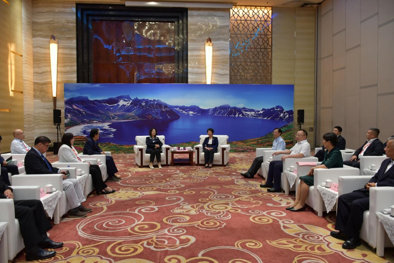 吉林省委省政府高度重視本次活動(dòng),7月25日,吉林省委常委、統(tǒng)戰(zhàn)部部長(zhǎng)吳海英會(huì)見(jiàn)了僑商代表團(tuán)一行。