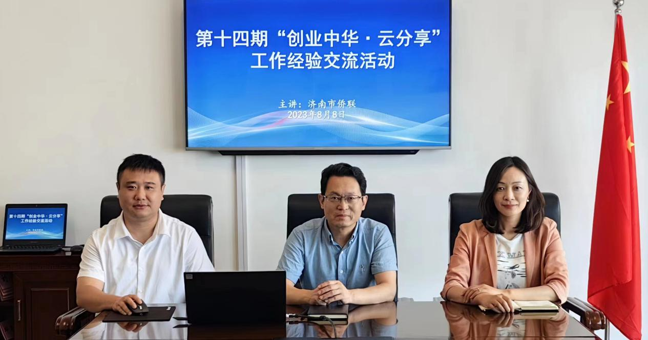 8月8日上午,中國僑聯(lián)經(jīng)科部舉辦第十四期“創(chuàng)業(yè)中華·云分享”工作交流活動,濟(jì)南市僑聯(lián)作專題分享。中國僑聯(lián)副秘書長、經(jīng)濟(jì)科技部部長趙紅英,經(jīng)濟(jì)科技部副部長祁德貴,經(jīng)濟(jì)科技部二級巡視員徐偉,濟(jì)南市僑聯(lián)黨組書記、主席米文芃,濟(jì)南市僑聯(lián)黨組成員、副主席孫洪成,全國各省級僑聯(lián)經(jīng)科部長、地市級僑聯(lián)分管經(jīng)科工作副主席等1600余人在線收看。