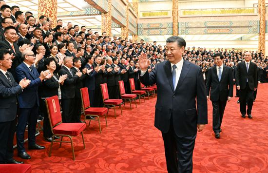 5月8日,黨和國(guó)家領(lǐng)導(dǎo)人習(xí)近平、王滬寧、蔡奇等在北京人民大會(huì)堂會(huì)見(jiàn)第十屆世界華僑華人社團(tuán)聯(lián)誼大會(huì)代表。