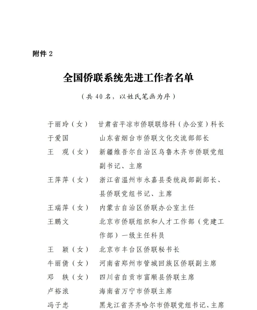 2.全國僑聯(lián)系統(tǒng)先進工作者名單