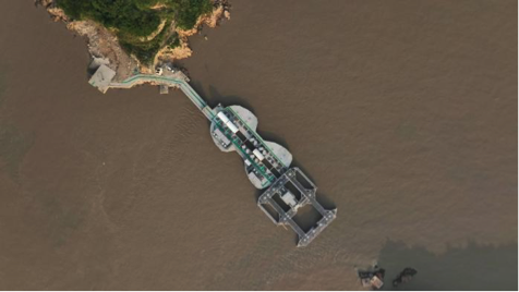 飛越浙江舟山,青山綠水間,中國首座海洋潮流能發(fā)電站就在眼前。發(fā)電機(jī)組總成平臺(tái)狀如一把巨大的“小提琴”,潮漲潮落之際,源源不斷地向國家電網(wǎng)輸送著來自海洋的清潔能源。