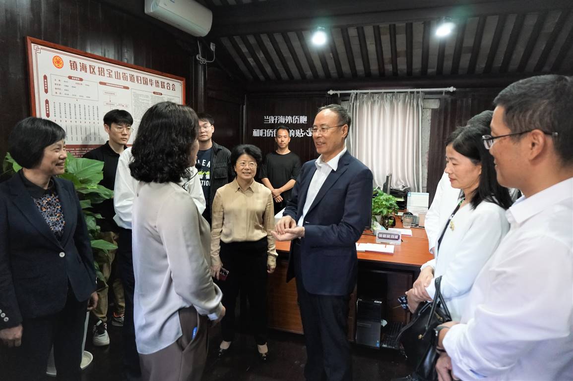 在招寶山街道后大街社區(qū),萬立駿聽取街道和社區(qū)僑聯(lián)負責人工作匯報,走進僑胞之家,察看工作陣地,同僑胞代表和基層同志交談。萬立駿指出,僑聯(lián)是群團組織,基層僑聯(lián)干部兼職較多。沒有情懷、沒有責任心,很難做好基層僑聯(lián)工作。招寶山街道僑聯(lián)組織健全,陣地條件好,工作活躍,值得肯定。僑胞之家搭建了一個很好的平臺,通過開展活動、提供服務,讓僑胞感受到黨和政府的溫暖,激發(fā)僑胞報效祖國、建設家鄉(xiāng)的熱情和干勁,希望你們再接再厲,把基層僑聯(lián)工作做得更好。