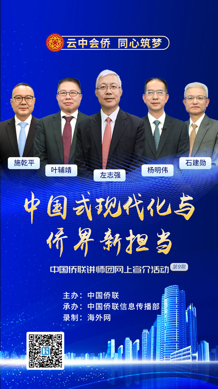 本期宣介活動由中國僑聯(lián)信息傳播部部長左志強主持。中共中央黨史和文獻研究院對外合作交流局局長楊明偉,國家發(fā)展和改革委員會宏觀經(jīng)濟研究院科研管理部主任葉輔靖,同濟大學國家創(chuàng)新發(fā)展研究院副院長、首席專家石建勛,中國僑聯(lián)新僑創(chuàng)新創(chuàng)業(yè)聯(lián)盟副理事長、華納控股集團董事長施乾平四位嘉賓圍繞主題,分別從中國式現(xiàn)代化的歷史來源,堅持高水平對外開放推進中國式現(xiàn)代化,以高質量發(fā)展引領中國式現(xiàn)代化,發(fā)揮僑商優(yōu)勢積極融入中國式現(xiàn)代化進程等方面進行全面深入的宣介。