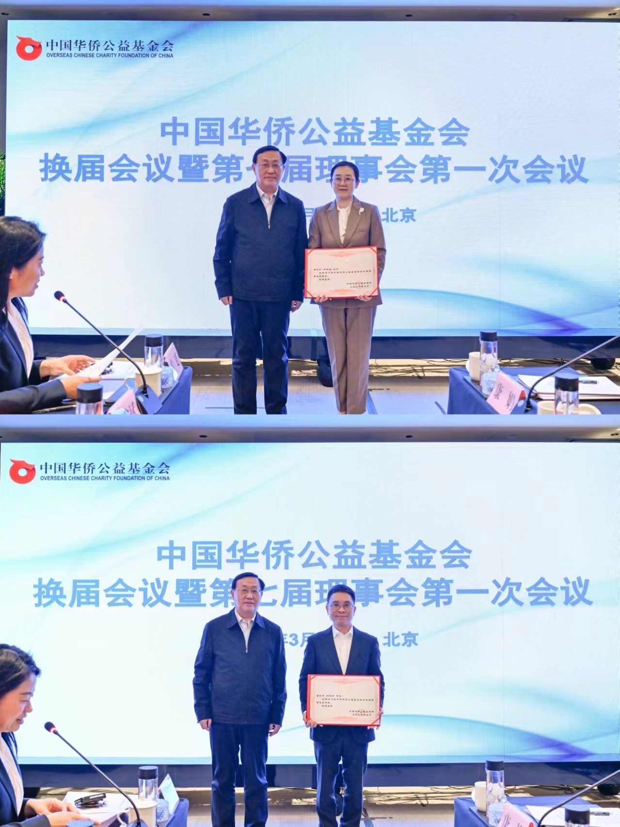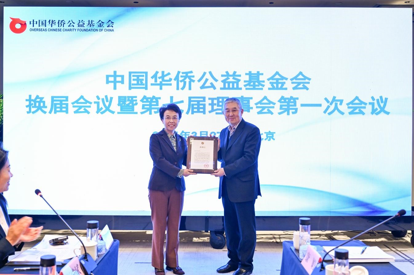 2024年3月27日上午,中國華僑公益基金會(以下簡稱僑基會)換屆會議暨七屆理事會第一次會議在京召開。中國僑聯(lián)副主席程紅出席會議并講話,為中國僑聯(lián)顧問、僑基會第六屆理事會理事長喬衛(wèi)頒發(fā)感謝狀。