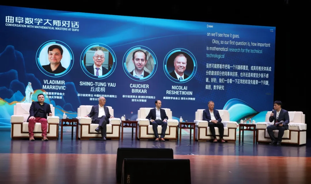 30日下午,“曲阜數(shù)學大師對話”在曲阜師范大學音樂廳舉行,3位菲爾茲獎得主丘成桐、考切爾·比爾卡爾(Caucher Birkar)、弗拉基米爾·馬克維奇(Vladimir Markovic)和美國數(shù)學會會士、清華大學丘成桐數(shù)學科學中心教授尼古拉·萊舍提金(Nicolai Reshetikhin)以“數(shù)學與人類文明、應(yīng)用的關(guān)系;如何讓學生學好數(shù)學”這個主題進行了討論,并與現(xiàn)場學生進行互動,清華大學丘成桐數(shù)學中心助理教授、2023首屆國際基礎(chǔ)科學大會前沿科學獎獲獎?wù)邚埰涿鬟M行了主旨演講,丘成桐現(xiàn)場為求真書院第二屆普特南數(shù)學競賽模擬賽獲獎同學頒發(fā)了獲獎證書。