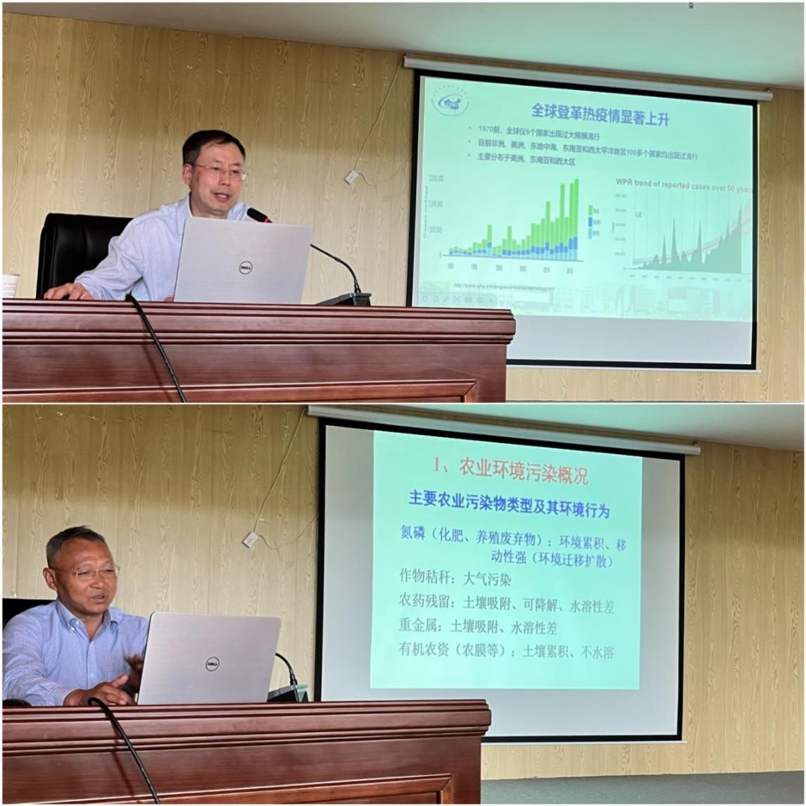 啟動儀式后,圍繞當(dāng)?shù)仃P(guān)切的熱帶疾病防控和生態(tài)農(nóng)業(yè)有關(guān)需求,殷文武以《登革熱的預(yù)防》為題做報告,梳理了登革熱病毒的主要傳播蚊媒和傳播過程,分析了全球疫情趨勢和季節(jié)性特點,結(jié)合全球防控戰(zhàn)略和相關(guān)技術(shù)文件提出防控建議。吳金水以《農(nóng)業(yè)環(huán)境污染與治理對策》為題做報告,解讀了我國農(nóng)業(yè)面源污染狀況,指出農(nóng)業(yè)污染治理中的突出問題,結(jié)合云南當(dāng)?shù)厍闆r,提出有效控制農(nóng)業(yè)面源污染的策略及有關(guān)應(yīng)用案例。